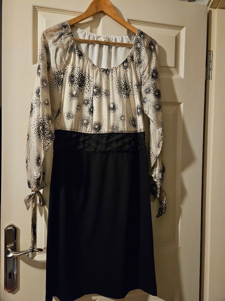 Uzun bağlamalı kolları,üst ipeksi saten kumaş alt tarafı etek şeklinde kendiliğinden kemerli