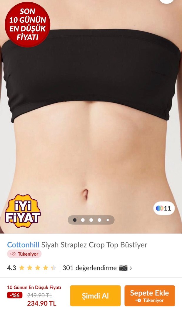 Cottonhill Siyah Straplez Crop Top Büstiyer
