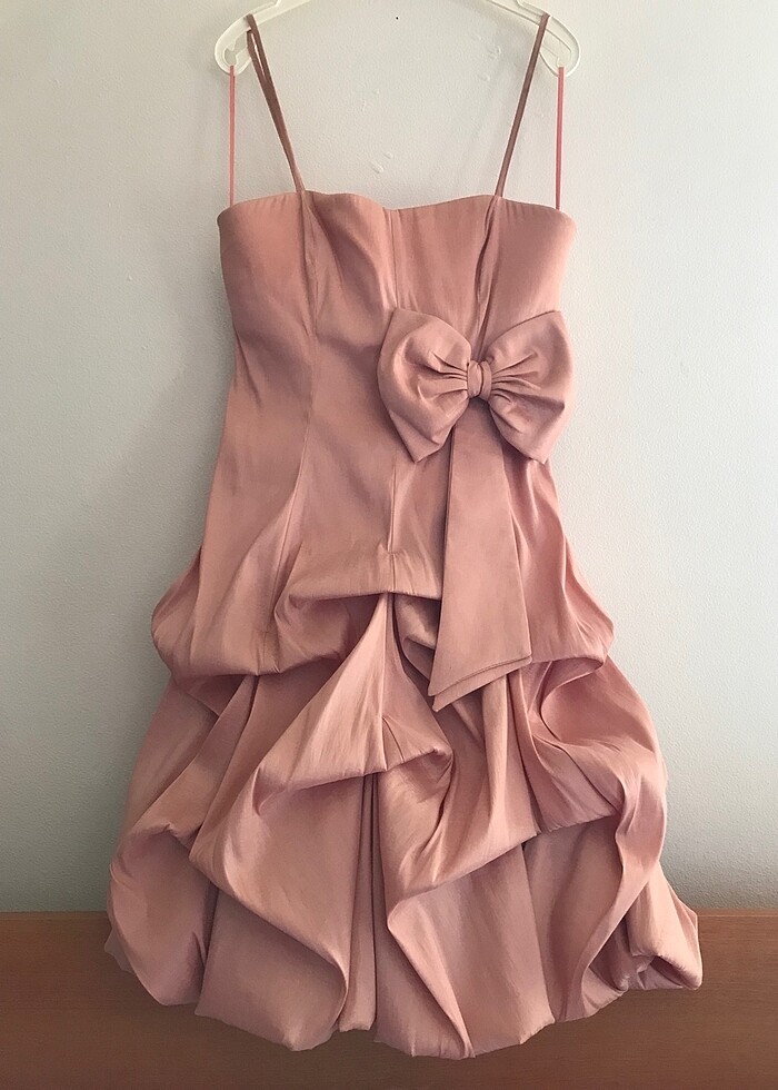 Yalnızca bir kere giyildi, kuru temizlemeden yeni geldi. Belinde abiyeye hem şık hem de tatlı bir hava katan kurdelesiyle, balon etek modeliyle #y2k şıklığında. Gerçek bir star. #couqette #y2k #cute #girlie #girl #cleangirl #vintage #abiye #elbise #10s #00s