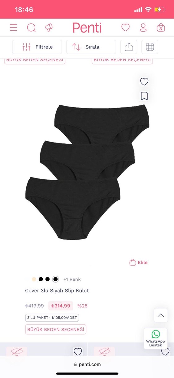 Yumuşak, rahat kumaştan yapılmış 3'lü siyah slip külot seti. Minimalist tasarıma sahip, normal boy uzunluğunda, günlük kullanım için uygun. sadece siyah S beden mevcuttur toptan satış vardır.