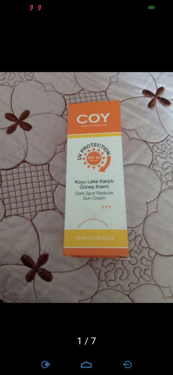 COY SPF 50 güneş kremi, UV ışınlarına karşı koruma sağlar ve koyu lekelerin görünümünü azaltmaya yardımcı olur. 50 ml tüp içindedir.