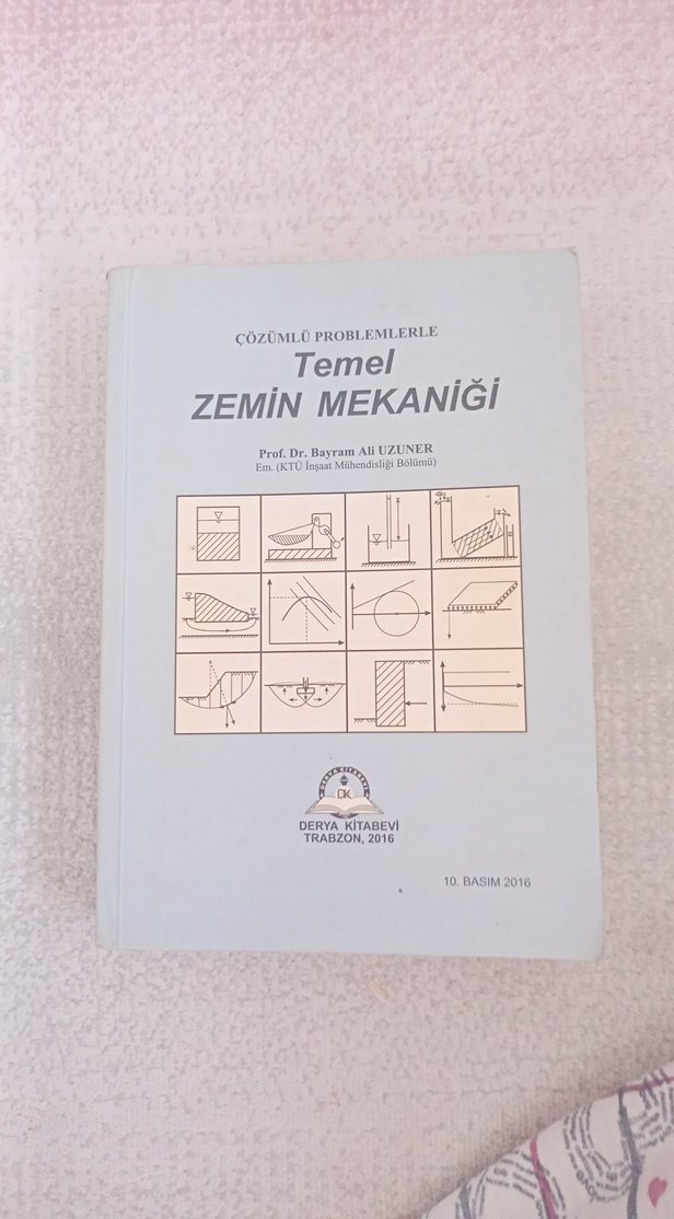 Prof. Dr. Bayram Ali Uzuner'in yazdığı, çözümlü problemlerle temel zemin mekaniği konularını içeren üniversite kitabı. 2016 baskısı.