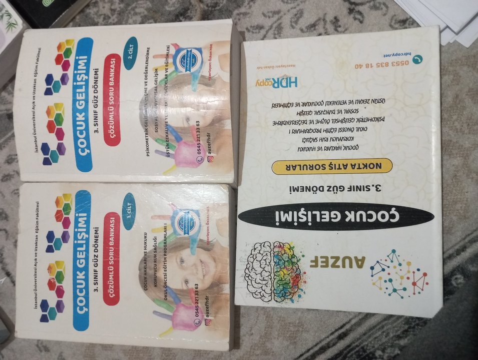 AUZEF çocuk gelişimi çözümlü soru bankası, ve nokta atış soruları kitabı işaretlenmedi görüldüğü gibi bilerek alım yapınız