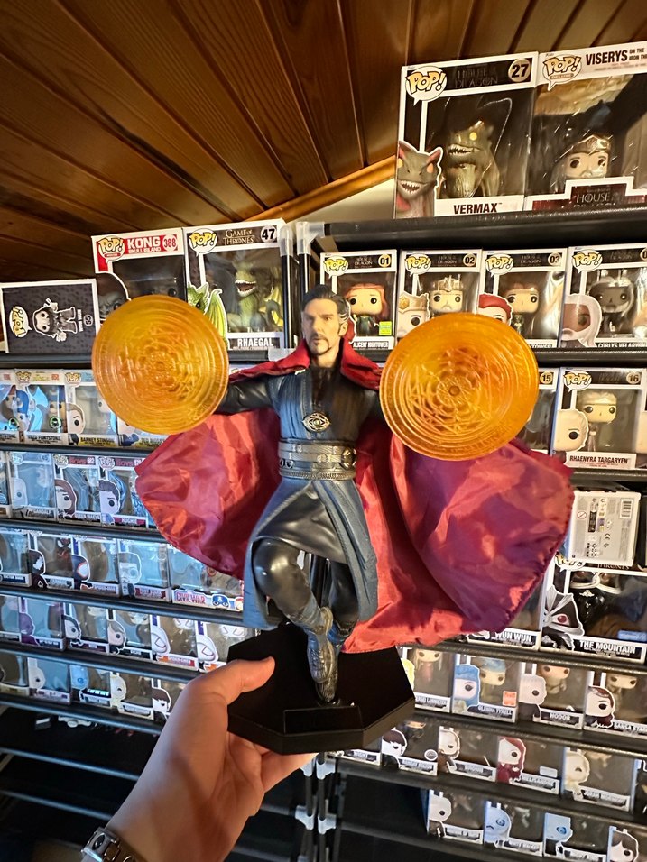 Crazy Toys Doctor Strange Marvel 1/6 Figürü. Kutusuzdur. Pelerinin içinde bulunan figürün boynuna tutunmasını sağlayan parça kırıktır, pelerinin içinde olduğundan belli olmuyor. Ama boynunda durmuyor tek başına, çift taraflı bant ile yapıştırılmıştır pelerin. Görüntüde bir sıkıntısı yoktur.