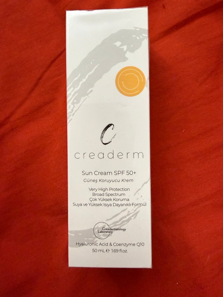 Creaderm güneş kremi SPF 50+ ile çok yüksek koruma sağlar. Geniş spektrumlu, suya dayanıklı formüle sahip olup hyaluronik asit ve koenzim Q10 içerir.