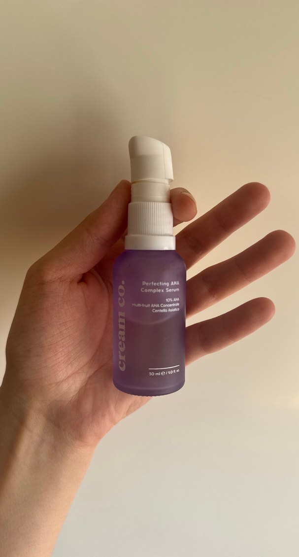 Cream Co. Perfecting AHA Complex Serum, %10 AHA çoklu meyve asitleri ve seramid asetat içerir. Cilt dokusunu ve görünümünü iyileştirmeye destek olur.