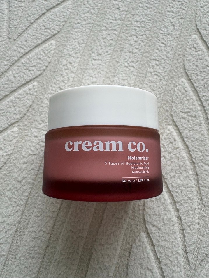 Cream Co. nemlendirici krem, 5 çeşit hyaluronik asit, niasinamid ve antioksidanlar içerir, cildi nemlendirir ve korur. Sadece bir defa hijyen şekilde kullanıldı ve herhangi bir sorun yoktur.