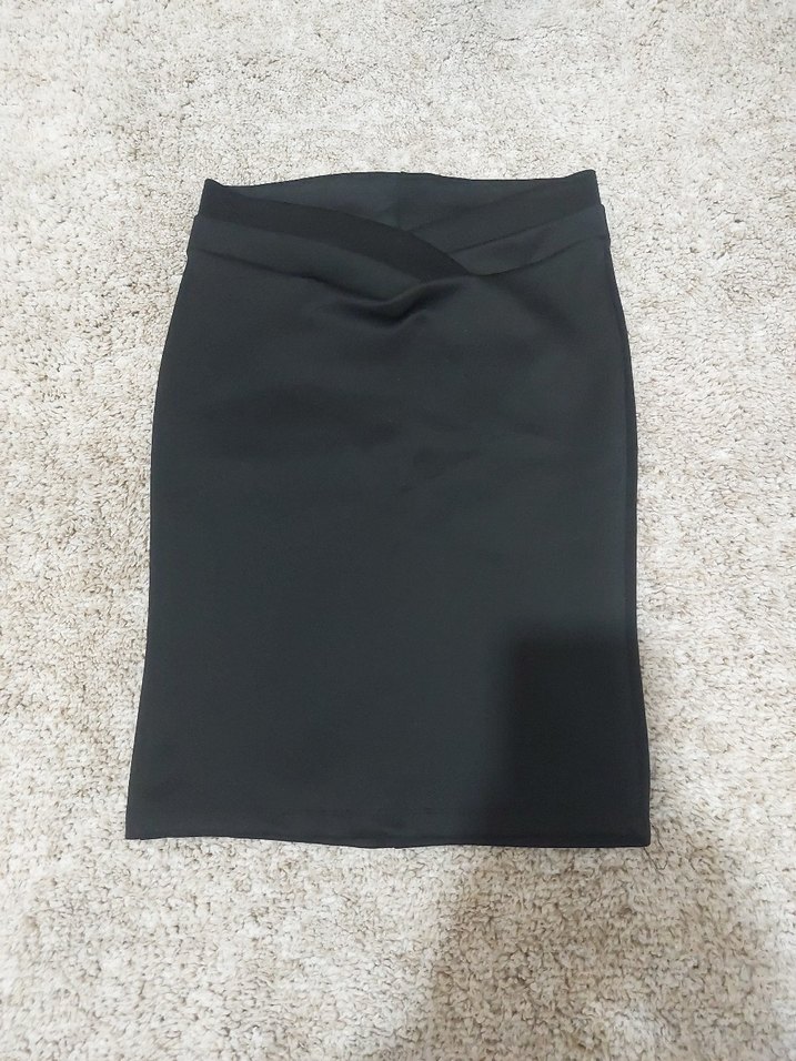 CREAM & ROUGE S Drapeli detaylı, düz siyah kalem etek, sentetik kumaştan üretilmiş ve ofis için uygun minimal tasarımıyla öne çıkar.