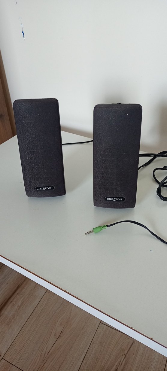 Creative marka siyah masaüstü müzik sistemi hoparlörleri, kablolu bağlantı ile net ses sağlar. Kompakt tasarımı farklı ortamlara uygundur.