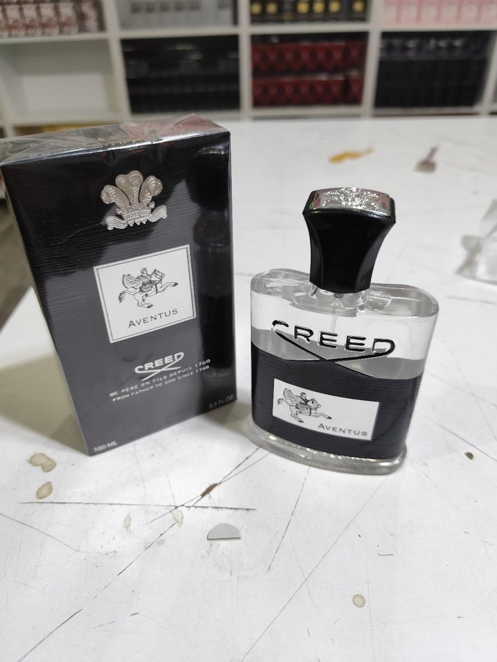 Creed Aventus erkek parfümü, klasik tarzda parlak siyah şişesiyle dikkat çeker. Şık tasarım marka ve Aventus yazısını öne çıkarır.