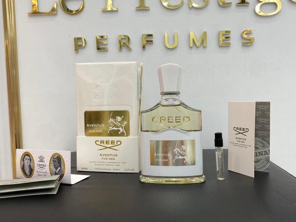 CREED Aventus For Her, parlak beyaz şişede klasik ve zamansız bir erkek parfümüdür.