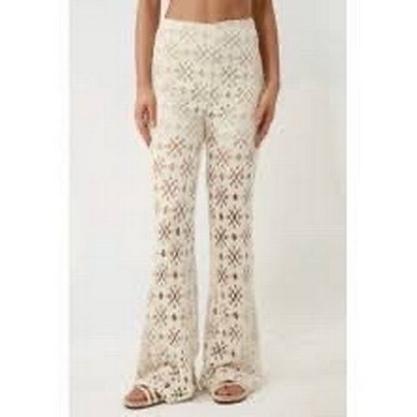 Bohem tarzda, işlemeli dantel detaylı, beyaz örgü kumaştan bol kesim midi pantolon. Günlük kullanım için rahat ve ferah bir yapıya sahiptir. Krem rengi, el örgüsü detaylı pantolon. Bohem tarzı sevenler için ideal. Ürün daha önce hiç kullanılmamıştır etiketleri üzerindedir iç astarı mevcuttur… Boy 120 cm paça genişliği 25 cm bel 34 cm lastiklidir