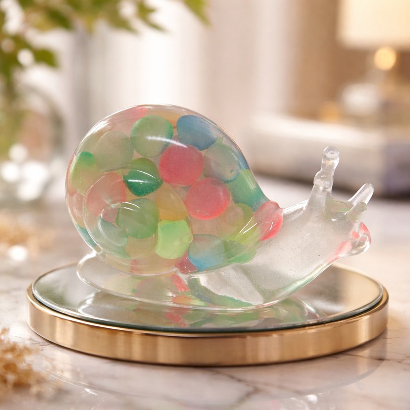 Işığı ve neşeyi içinde taşıyan kristal salyangoz Renkli kristal küreleri andıran kabuğu ve cam gibi şeffaf gövdesiyle Lumaca Luminosa, bulunduğu ortama canlılık, neşe ve pozitif enerji katan özel bir dekoratif figürdür. Salyangoz; yavaş ama kalıcı ilerlemenin, sabrın ve bolluğun sembolüdür. Bu tasarımda ise o anlam, renkli kristallerin enerjisiyle birleşerek umut, şans ve yeni başlangıçların simgesi hâline gelir. ✨ Ürün Özellikleri • El yapımı epoksi sanat objesi • Cam görünümlü, yüksek parlaklık • Renkli kristal efektli kabuk • Dekoratif, koleksiyonluk ve hediye için ideal • Her parça benzersizdir Evine, ofisine ya da sevdiklerine ışık, neşe ve bereket getirmesi niyetiyle hazırlanmıştır.