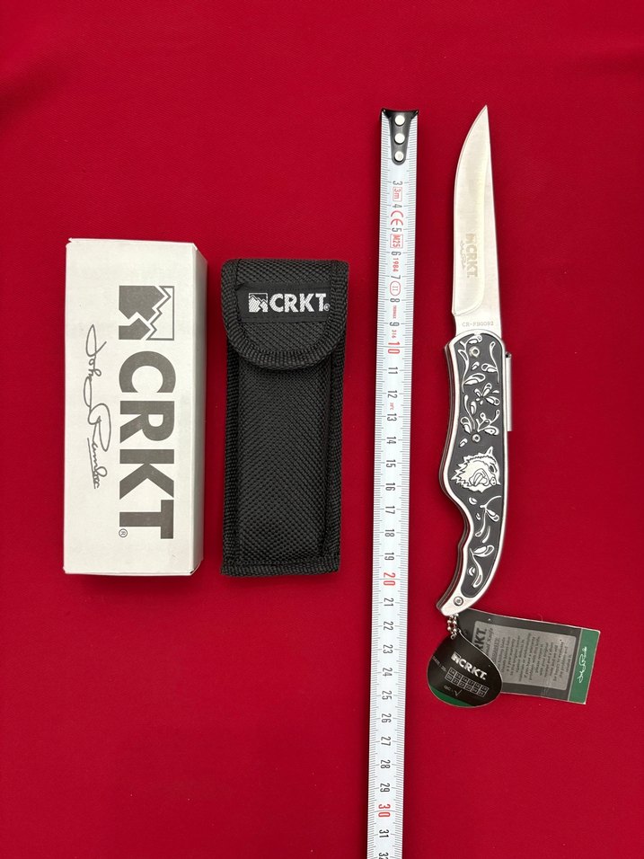 CRKT katlanabilir çakı, keskin paslanmaz çelik bıçağa ve desenli siyah sap kısmına sahiptir. Siyah naylon kılıf ve orijinal kutu dahildir. ️