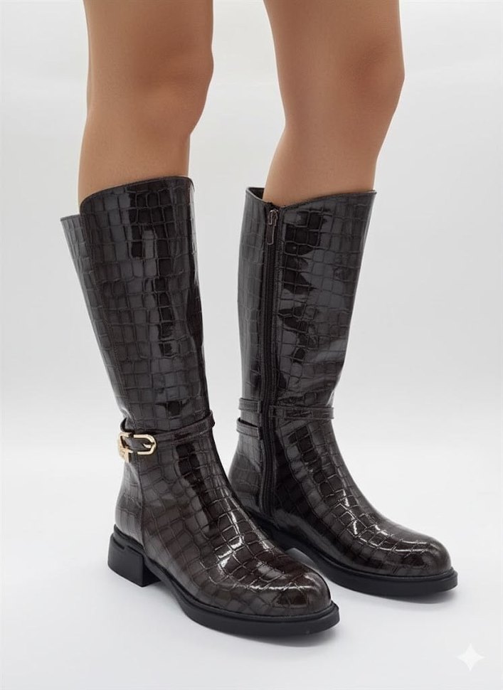 CROCO PARLAK KEMER DETAYLI ÇİZME (36-40 NUMARA ARALIĞI)
