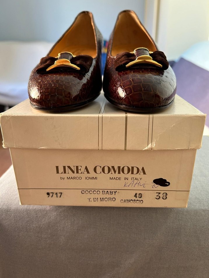 Linea Comoda by Marco Iommy marka İtalyan deri kadın ayakkabı, blok topuklu ve tokalı vintage desenli. İtalya yapımı. Hiç kullanılmamış.