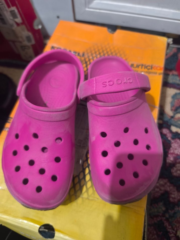 crocs kız Çocuk Pembe Cırtlı Terlik