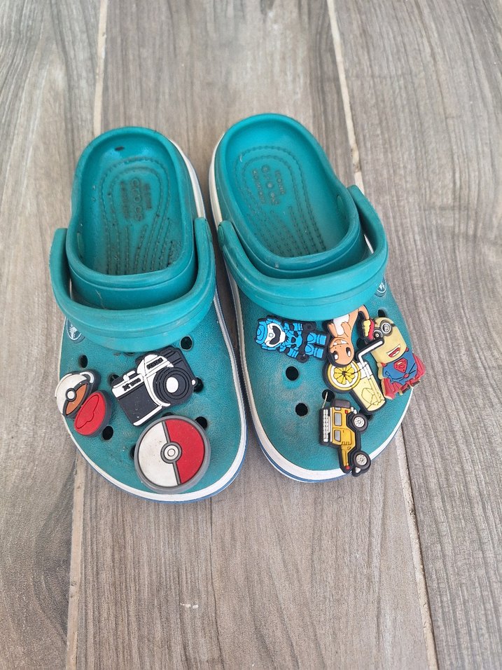 orginal crocs cocuk terliği. Tek sezon giyilmistir. Yırtıgı ,lekesi yoktur. yeniden farksız. biz küçük geldiği için satmak istiyoruz. Oğlumun fikrine göre süsler bire bir gonderileneyebilir. Eksik olabilir.