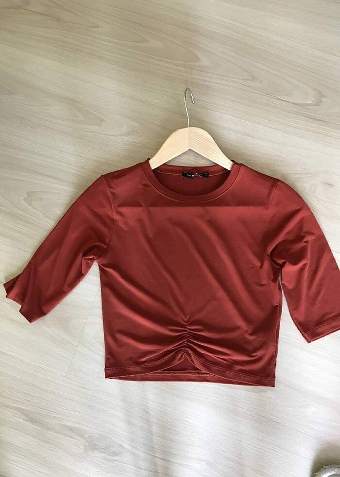 Likralı, kolları sarıyor. Göbek kısmındaki hafif büzgünün olduğu bölümde göbek birazcık açıkta kalıyor. Kalıbı çok güzel.