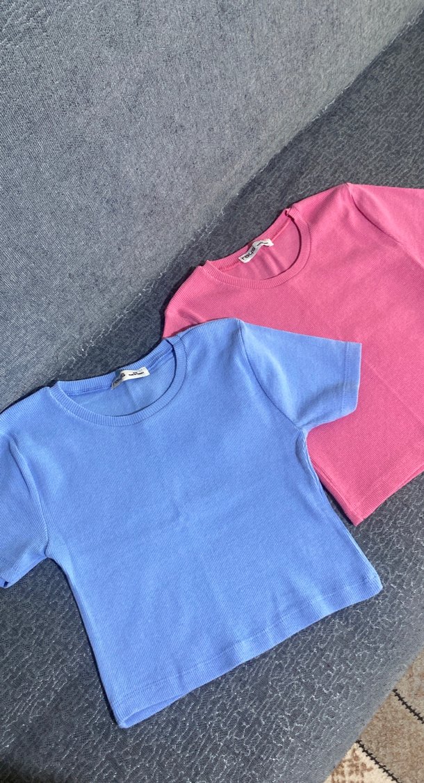 2 li Crop standart beden hiç kullanılmadı mavi ve pembe renk