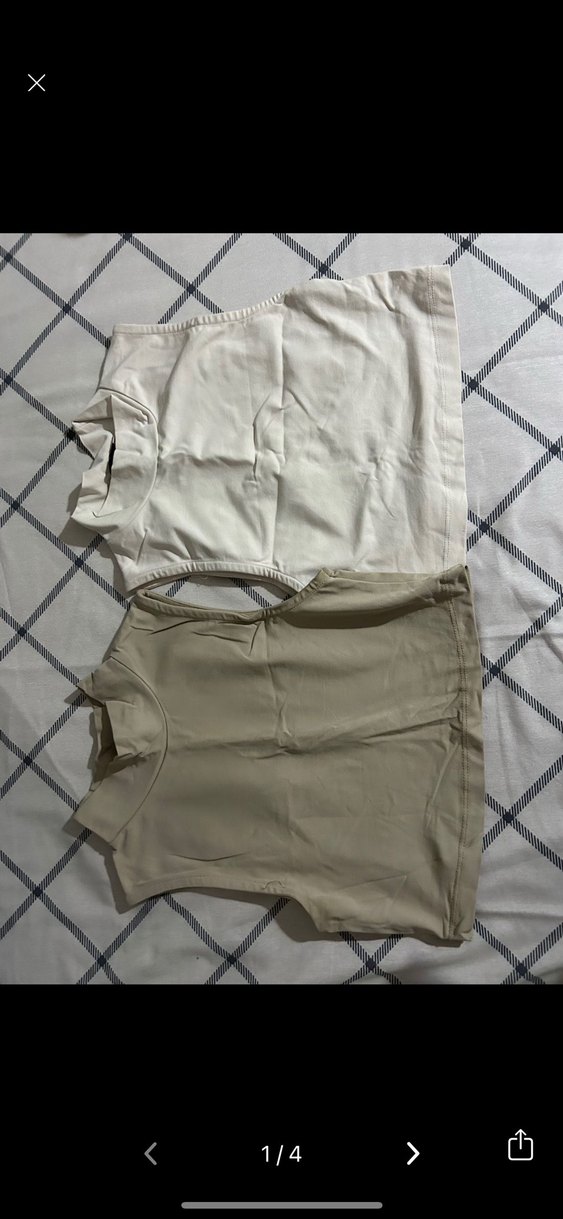 Desensiz, normal crop boyda, bej ve gri renklerde, vücuda oturan model. İki adet fiyatıdır.