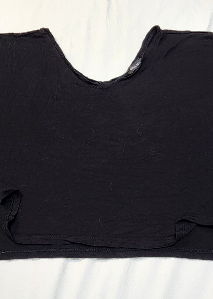 Crop kısa kollu yanları yırtmaç detaylı bluz