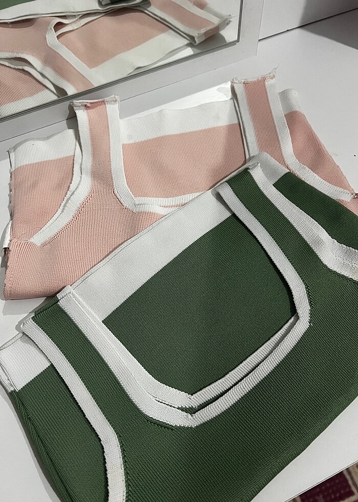 2 li crop üst pembe ve yeşil soft renk hic giyilmedi