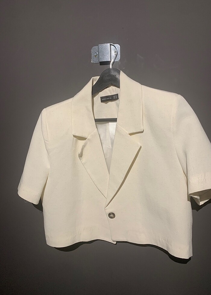 Kruvaze yaka crop ceket Ekru renk M beden Hiç giymedim Barrels and oil marka
