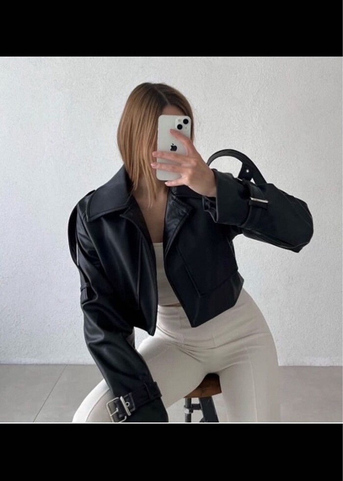 Crop deri ceket