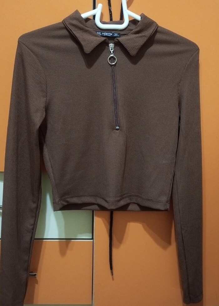 Crop Fermuarlı Bluz