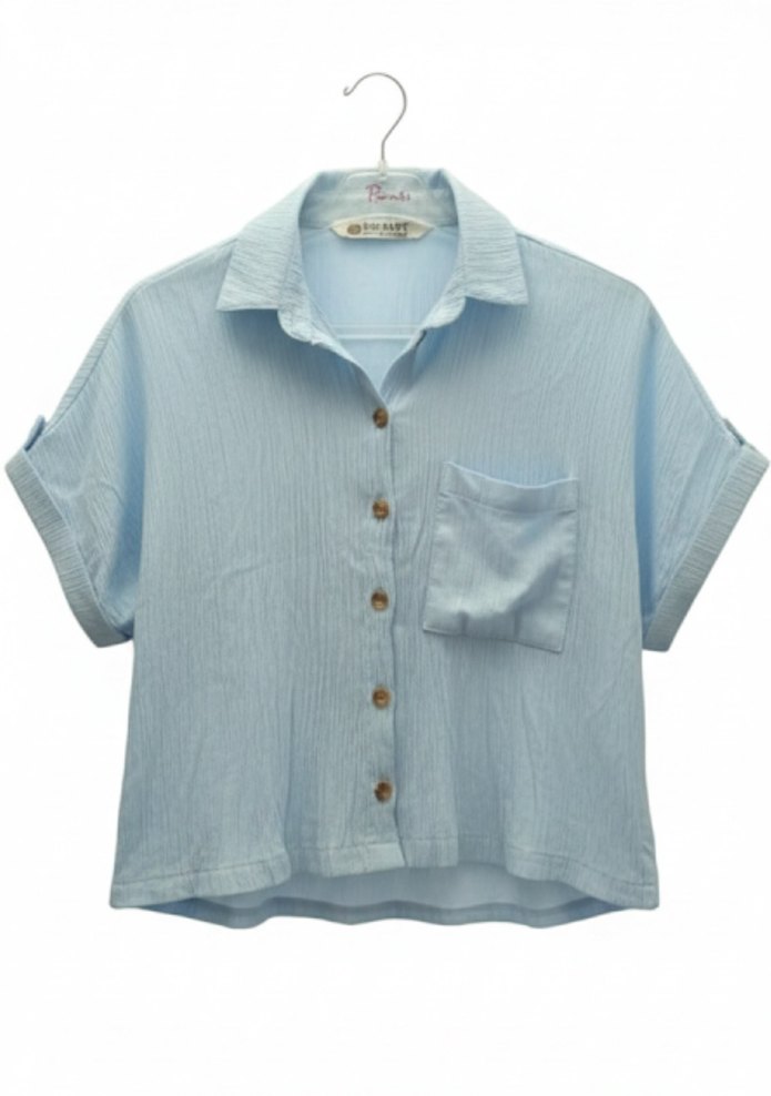 Buz mavisi / bebe mavisi crop gömlek bluz 36 ve 38 bedene uygundur