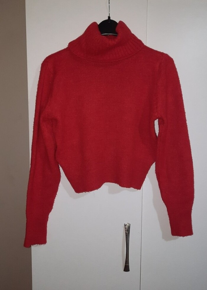 Boğazlı, yuksek bel pantolon ile giyildiginde karın bölgesi kapanıyor cok kısa degil, 1 kez girildi, standart beden, defosu ve lekesi yoktur.
