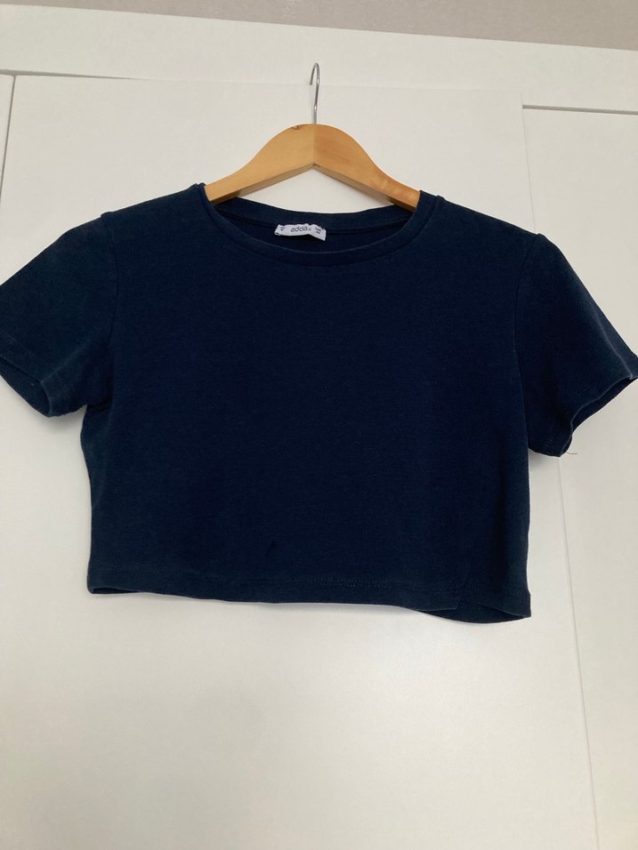Crop Lacivert penye Kısa Kollu Tişört