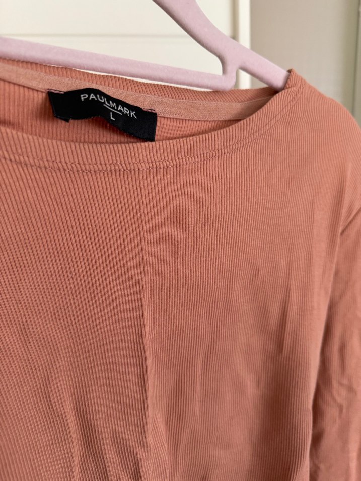 Bej renkli, yuvarlak yaka ve uzun kollu kadın keten tişört, nefes alabilir kumaştan. Minimalist ve şık kesimiyle günlük kullanıma uygun.