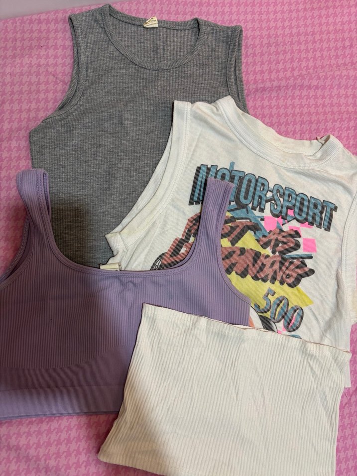 2 Beyaz crop da M beden gri olan S beden Lila olanın etiketinde L yazıyor ama M giyen biri için daha uygun l giyen birine küçük olabilir Lila olanda bir leke var çıkar mı bilmiyorum çıkarmaya çalısmadım HEPSİNİN FİYATI 400 Ayrı ayrı farklı fiyatlar