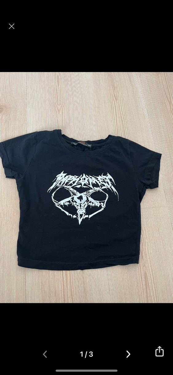 Siyah pamuk kısa kollu tişört, gotik baskılı, bol kesim ve yuvarlak yaka ile rock punk havası sunar.
