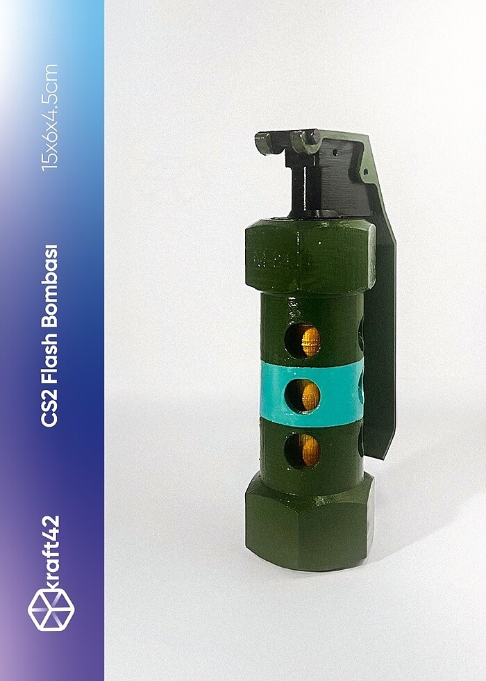 *CS2 Flash Bombası - Flashbang* Counter Strike serisinin vazgeçilmez tercihi flashbang, sadece oyunda değil, gerçek hayatta da elinin altında! (Ürün herhangi bir zarar vermez, sadece figürdür.) *Ürün Özellikleri* Ürün Adı CS2 Flash Bombası - Flashbang Ürün Kodu 009 Boyut 15x6x4.5cm (En-Boy-Derinlik) Materyal Creality Hyper PLA Renk Koyu Yeşil/ Turkuaz/Siyah/ Altın/ Mor Ağırlık Yaklaşık 120gr Boyama Art Deco Serisi Kaplama ArtDeco Parlak Vernik Ürünler kişiye özel üretildiğinden dolayı ufak gecikmeler yaşanabilir. Kargoda oluşabilecek hasarları doğrulayabilmek için lütfen paketinizi açarken video kaydı alınız.