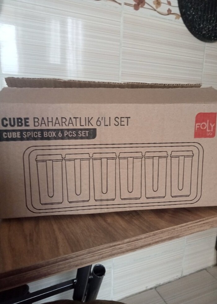 cube 6li baharatlık set, ister tezgahta ister duvarda. 6 adet kaşık ile birlikte, kapaklı 6 adet baharatlık. sıfır ve kutusundadır.