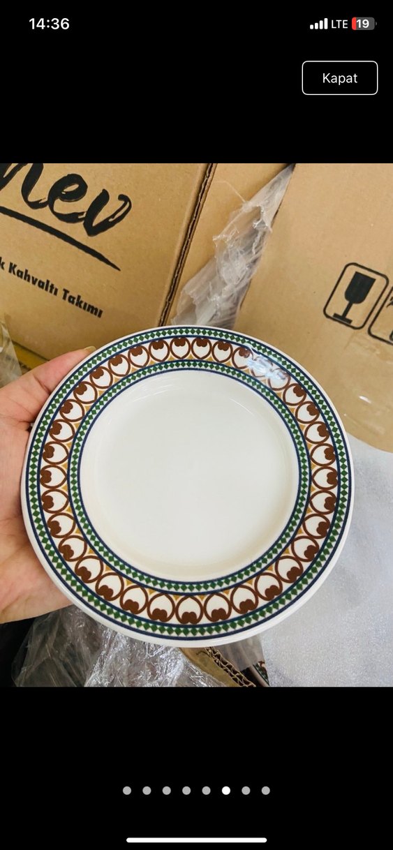 Kahvaltı takımı tabağı, beyaz ortası ve kahverengi desenli koyu kenarlığa sahiptir. Şık sunumlar için uygundur. 12 adet fiyatı