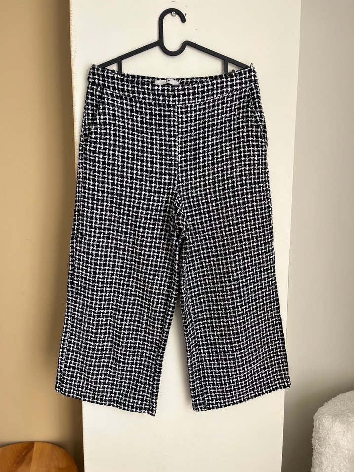 Gri renkte, pamuk kumaştan, culotte model midi boyda, regular fit kadın pantolon. Günlük kullanıma uygun, Paris tarzı sokak modası esintili.L/40 bedendir