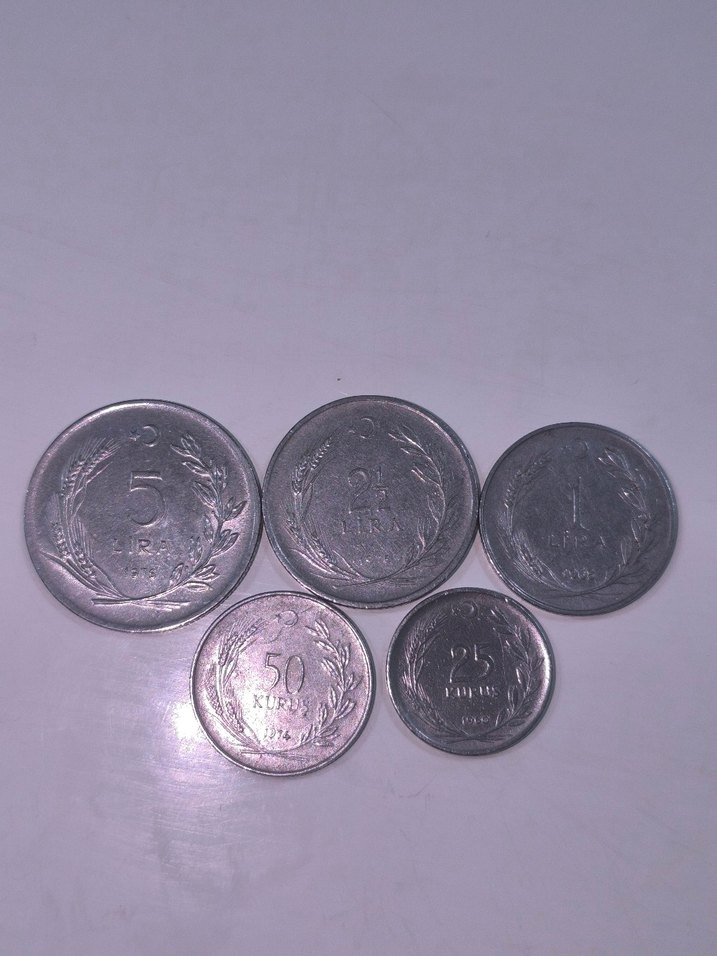 Cumhuriyet Dönemi Lotu Uygun fiyata 5 Lira 2,5 Lira 1 Lira 50 Kuruş 25 Kuruş Seri Lot koleksiyoncular icin
