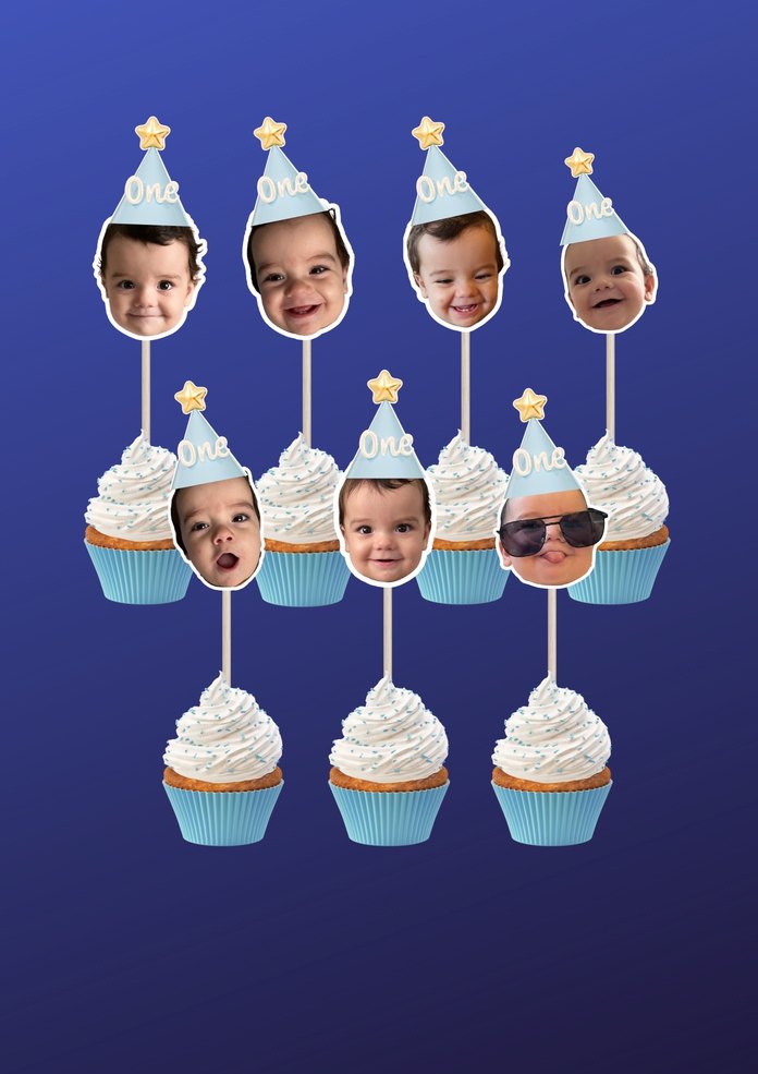 İstediğiniz konsepte uygun fotoğraflı cupcake kürdanları. İlk yaş kutlamaları için uygun. 20 adet fiyatıdır. Adet sayısını fazla isterseniz fiyatı biraz daha uyguna gelebilir.