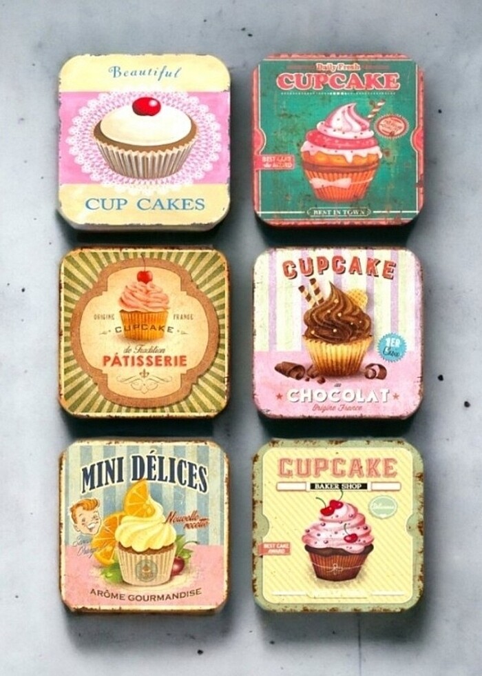 Cupcake Retro Vintage Ahşap Bardak Altlığı Seti 6 Adet