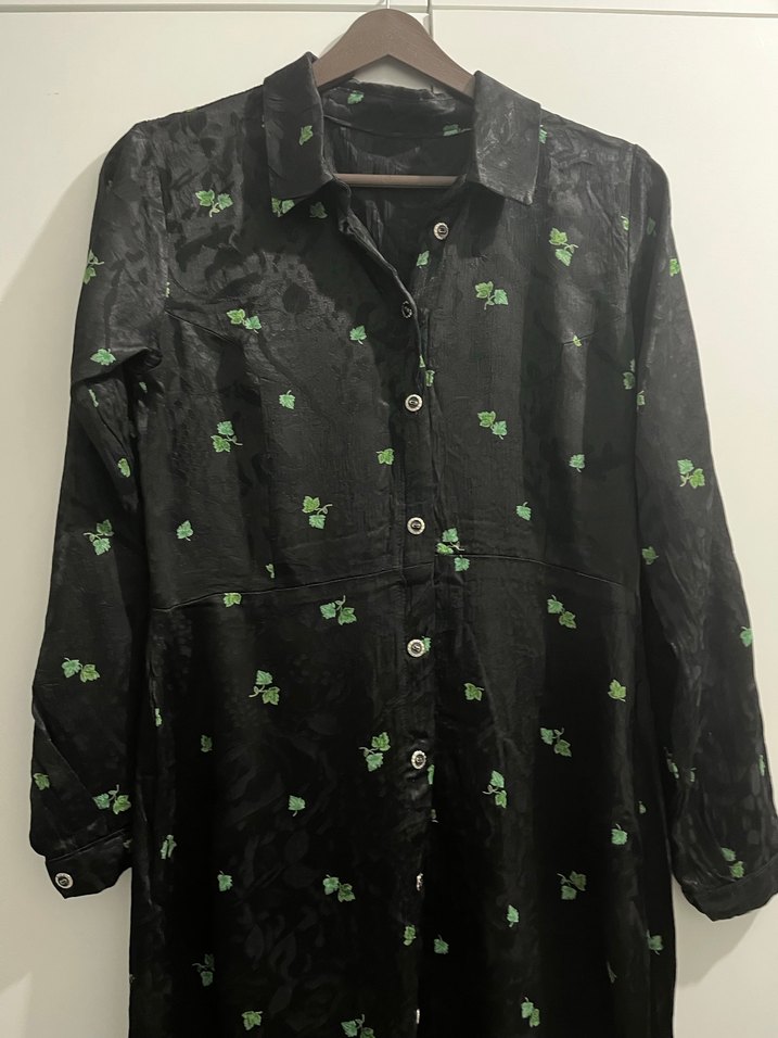 İki defa giyildi . Özel dikimdir. İçindeki payı da düşünürsek 38-40 bedene kadar uyumludur.İki koltuk altı arası 47 cm’dir .Pay açılırsa en az iki santim daha genişler.