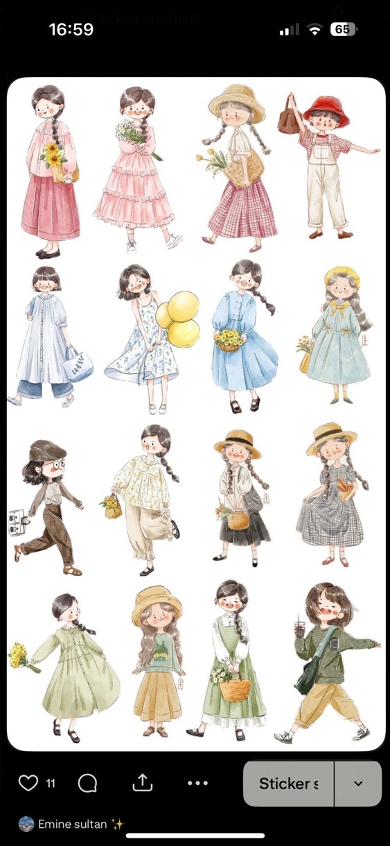 Cute girls sticker seti