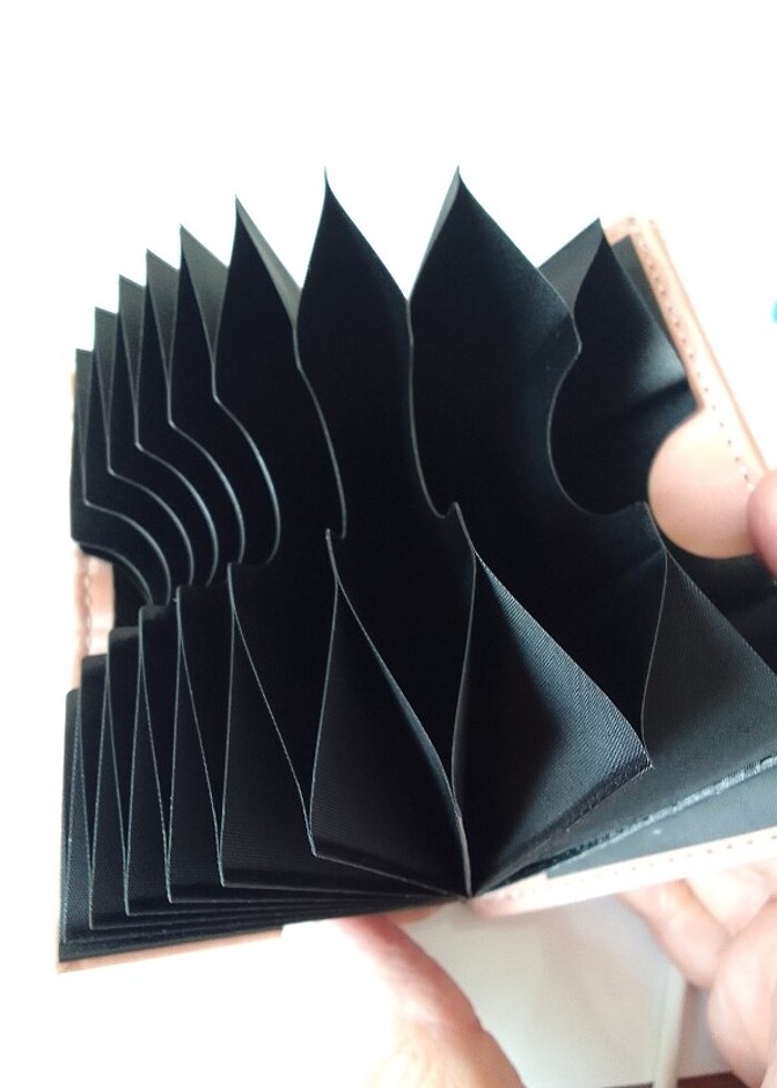 Son n rengi, kimlik kartlık kısmı ve para koyma gözü dışında o siyah kısımda 10 ayrı bölüm yapılmış.Hediyelik paketiyle göndereceğim. 9.5*8 cm ebadında, küçük ve fonksiyonel bir cüzdan.