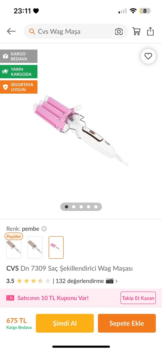 CVS Dn 7309 pembe saç şekillendirici wag maşası, dalgalı ve bukleli saçlar için üçlü varillere sahiptir. Rahat tutuş ve etkili şekillendirme sunar.