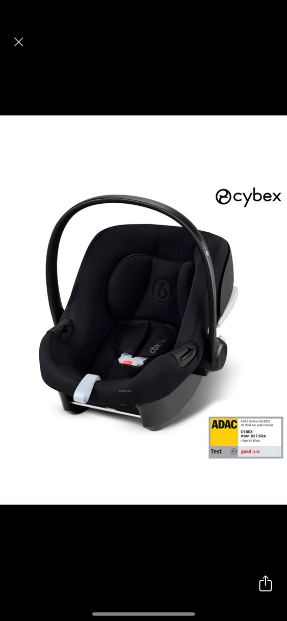 Siyah renkli Cybex bebek oto koltuğu, sağlam taşıma sapı ve ADAC tarafından onaylanmış güvenlik ile konfor sağlar. Çok az kullanıldı