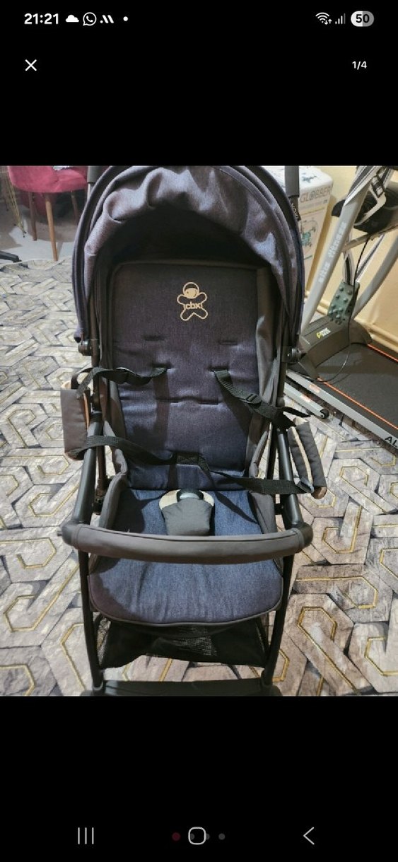 kot rengi renkte, emniyet kemerli ve yastıklı oturma alanına sahip bebek arabası. Katlanabilir tasarımı ve koruyucu tente bulunur. Rahat ve güvenlidir.