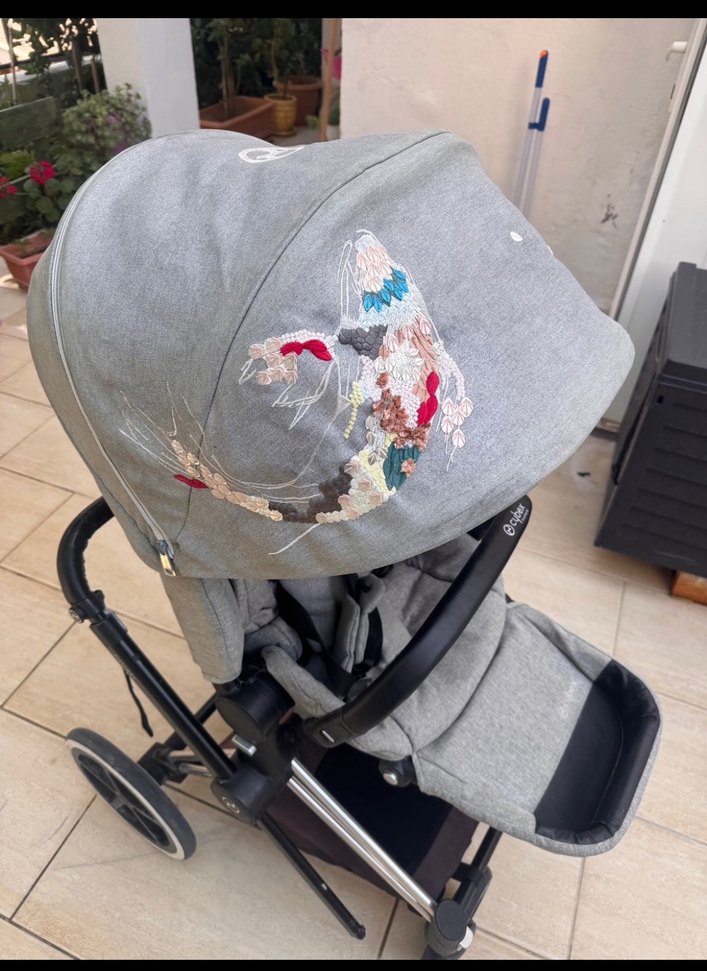 Gri renkte, renkli Koi Balığı nakış detaylı lüks segment bebek arabası. Opera İstanbul Mağazasından alındı. Cybex Priam (Özel Seri Koi Tasarım Ürünü İkonik Lüks Bebek Arabası) Tam yatışlıdır. Doğumdan itibaren 25 kg'a kadar ÇİFT YÖNLÜ kullanım. Süspansiyonlu tekerlekler bebeklere rahat ve huzurlu bir sürüş sağlar. Tek elle kolaylıkla katlanır; katlandığında sürme kolu yere değmeden dik durabilir. Yüksek oturma pozisyonu ile restoranlarda mama sandalyesi olarak kullanma imkanı sağlar. UPF 50korumalı XXL tentesinde fermuarlı penceresi bulunmaktadır. Geniş hacimli alt sepet eşyalarınızı rahatlıkla taşımanızı sağlar. Ağırlık: 10 kg Yağmurluk dahildir. Travel set için ana kucağı adaptörü dahildir. Not: Fotoğraflarda görüldüğü üzere arabayı sürme kolunda hafif soyulma mevcuttur. Alt sepetin renginde güneşe bağlı solma olmuştur. Başka bir sıkıntı bulunmamaktadır.